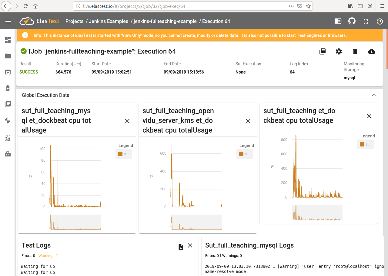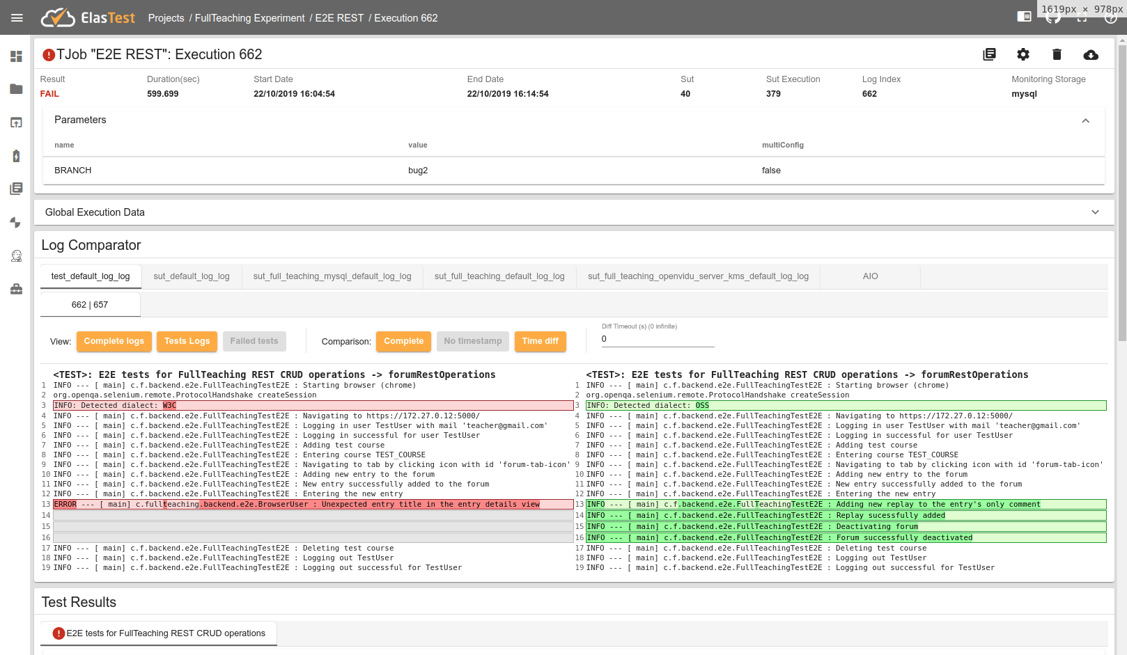 Obtén todas la información de tus componentes de cada test, navegador web, base de datos, aplicación… Logs y métricas generados durante la ejecución de un test en un solo sitio y sincronizados.